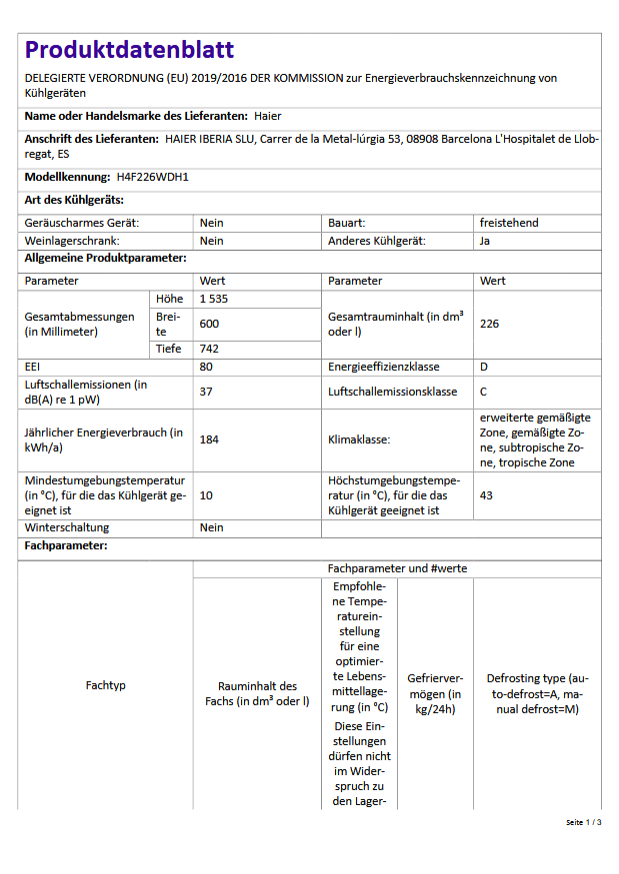 Details: Haier H4F226WDH1 Gefrierschrank