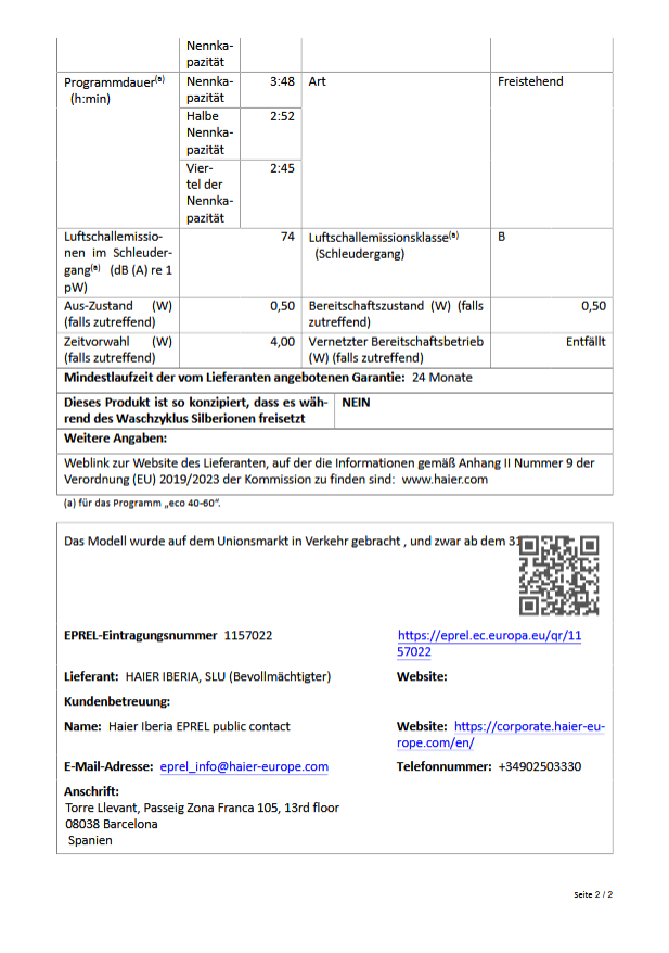Details: Haier HW90-BP14939-DE Waschmaschine
